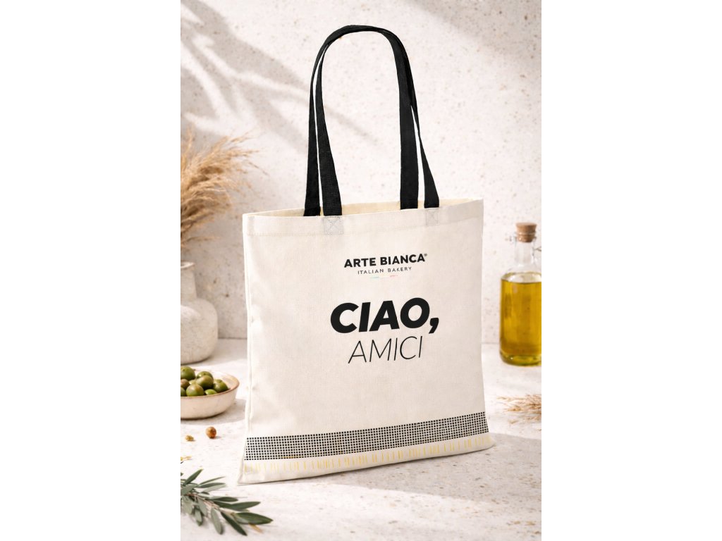 Plátěná taška Arte Bianca není jen obal. Je to malý kousek Itálie, který bereš s sebou do města. Minimalistický design, kvalitní materiál a hravý detail „CIAO, AMICI“ mluví za vše – máme rádi věci, které jsou krásné, praktické a vydrží.